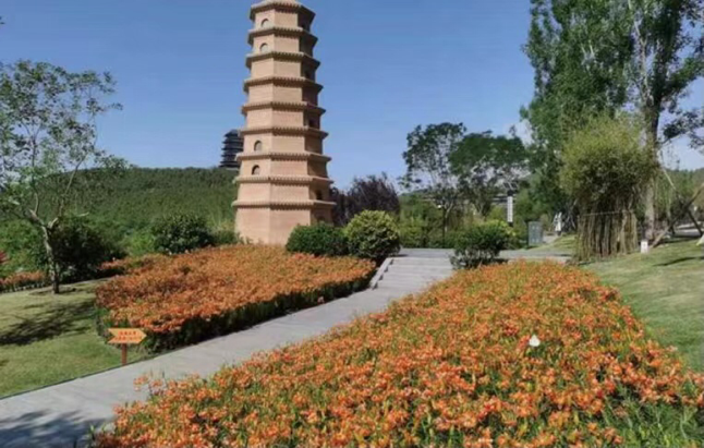 由住房和城乡建设部主办、江苏省人民政府承办的第十三届中国(徐州)国际园林博览会建设工作全部完成,布展项目顺利通过验收,交付江苏省管理。本届展会主题为“绿色城市,美好生活”。陕西园以“红色传承,三秦颂歌”为主题,用“一轴一带三中心”结构脉络展现“秀美陕西”“开拓陕西”“传承陕西”风貌。园内宝塔耸立、飞檐翘角,地形高低错落,碧水曲折回环,白皮松、石榴树、枣树等乡土树种三五成团,搭配红枫、红叶李、火焰南天竹等乔灌木以及300余平方米的山丹丹,展现出朴实厚重的陕西人文底蕴、时代潮流中传承的红色文化以及高质量发展的奋进陕西形象。