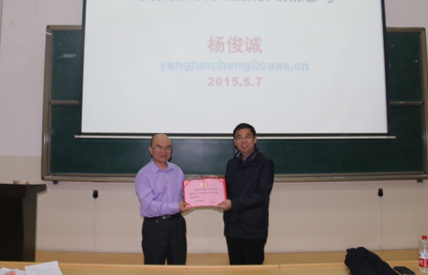 聘任仪式结束后,杨俊诚研究员为全校200余名师生作了题为《我国粮食安全的几点思考》的学术报告。报告会上,杨研究员首先分析了我国粮食生产的现状、土壤污染的现状、设施农业污染现状及粮食安全存在的问题,结合自身的研究成果提出了“土壤数量和质量安全是国家粮食安全的根本”的独到见解,并与现场师生进行了热烈而频繁的互动,受到师生热烈欢迎。