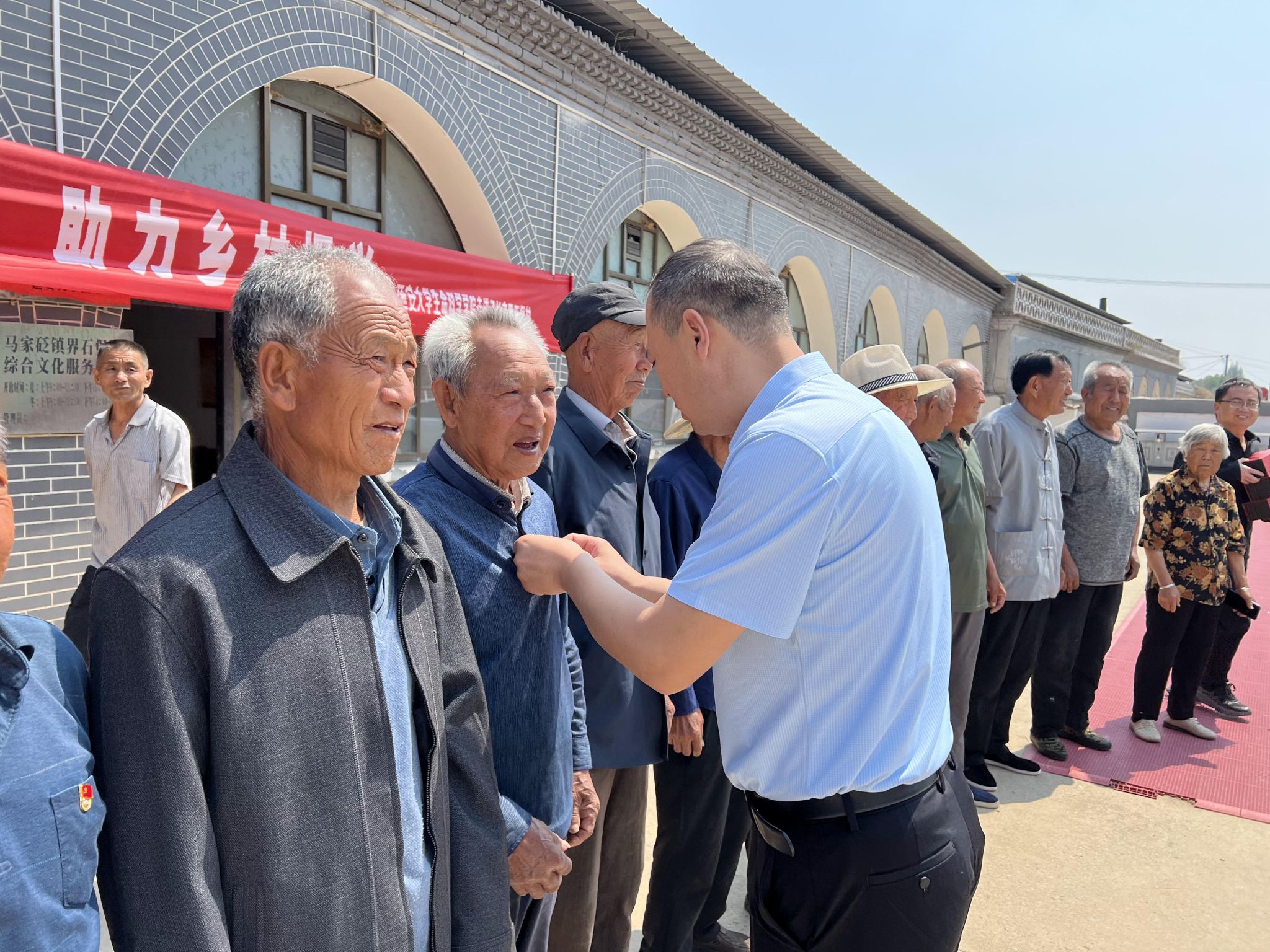 党课结束后,朱伟和马家砭镇党委书记高蕾为村里老党员佩戴了党徽,并赠送了端午节纪念品。“科技兴农”党员志愿服务队向产业户代表宣传讲授了农业科技知识。
